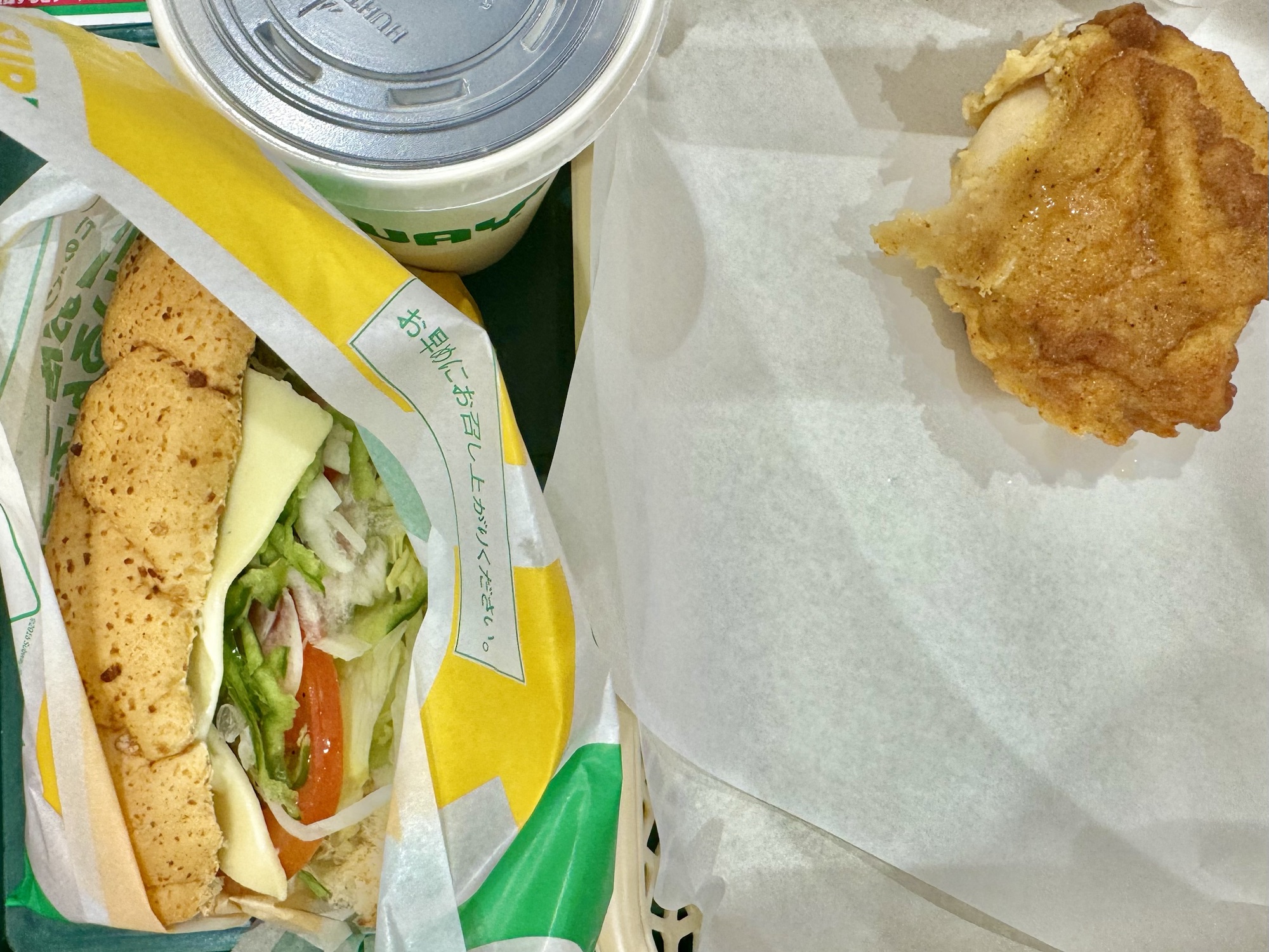 そんな中で味わう、サブウェイのチーズオンチーズ+ツナ、そしてケンタッキーのチキン。どちらも変わらない安心の味で、今日という一日を静かに祝福してくれました。