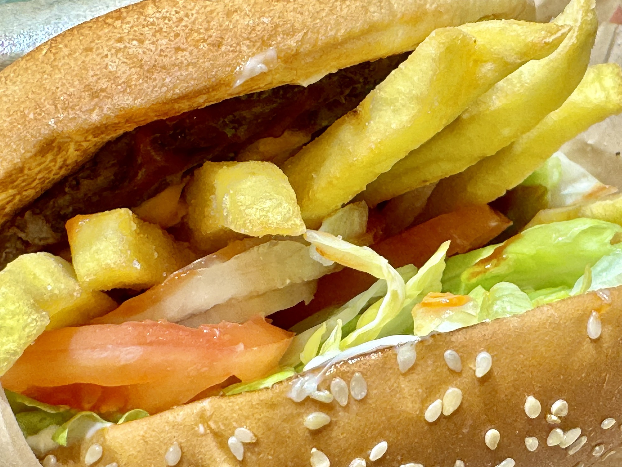 これまでは定番のナゲット(250円)を追加するのが習慣だったが、今日はグッとこらえてナゲットは封印。節制モードでバーガーキングを楽しむことにした。