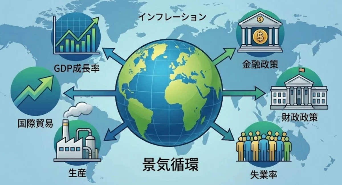 経済は常に一定のペースで成長するわけではなく、好況と不況を繰り返すサイクルがあります。これを景気循環と呼び、大まかに4つの局面に分けられます。