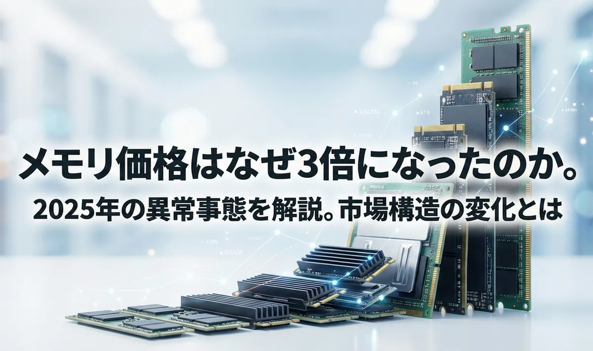 すでに、一般向けメモリ価格は約2.8倍〜3.3倍に上昇しています。これは一時的な品薄ではなく、市場構造の変化です。