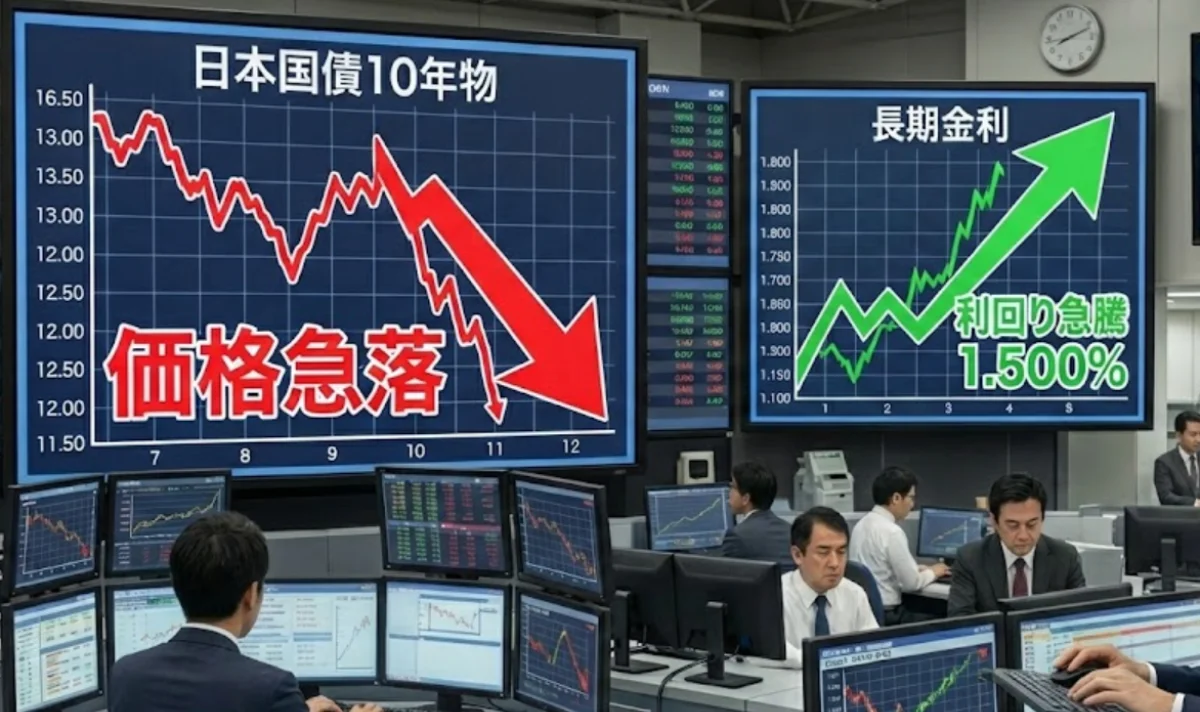 報道では、日本の10年国債の利回りが短い期間で大きく上がり、30年も大きく動いたとされています。国債の利回りが上がるということは、国債の値段が下がったという意味です。国債が売られると、世の中の金利の基準が上がりやすくなります。