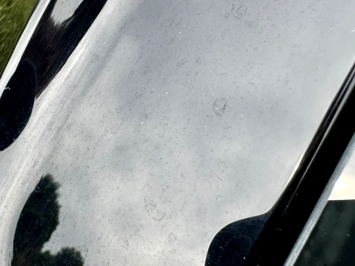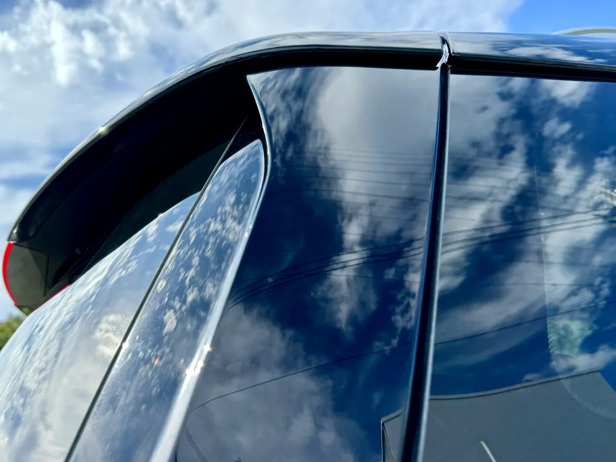 次に、外装のピアノブラック部分を中心に9800番で磨いていきました。ミニクロスオーバーはドアモールやピラーなどにピアノブラック素材が多く使われており、そこにできた細かなキズや水垢のシミが意外と目立ちます。