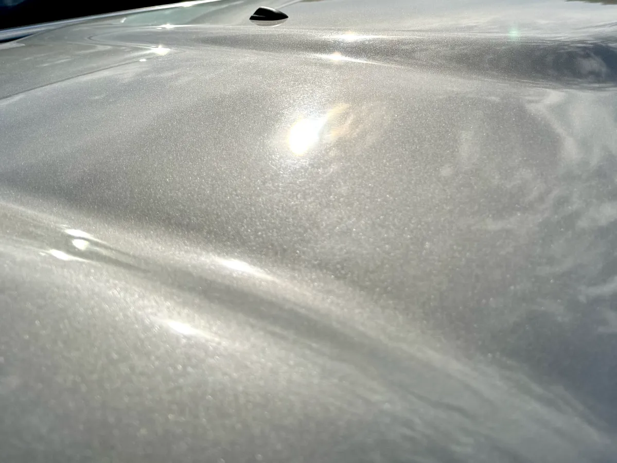 実際、磨いた部分は鏡のように輝きを取り戻し、太陽光の反射でボディが引き締まって見えるようになりました。