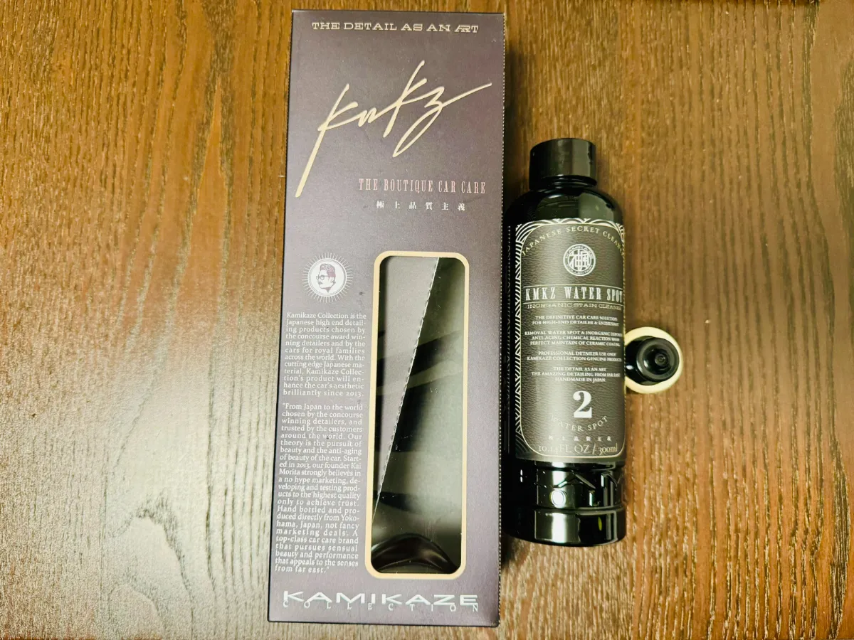 価格は2,533円で、通常2,980円の商品がセールで手に入りました。黒い車の宿命ともいえる白い水垢は、放置された水道水のミネラルが固まってしまうことで生まれます。今回はKAMIKAZE COLLECTIONのウォータースポットリムーバーを使い、ドア5枚に広がっていた水垢をどう落としたのか、実際の使用感をレビューします。