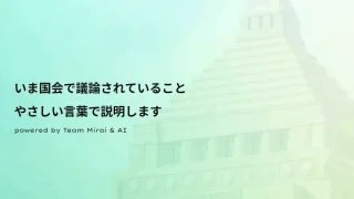 【AI】 「みらい議会」は何をめざすか?テクノロジーで政治を見える化する挑戦 「みらい議会」というサイトを見て、わかりやすくて良いサイトだと感じました。これは新興政党・チームみらいが、自らの政策や国会での法案情報を、AI技術も交えて国民にわかりやすく届けようという試みです。では、どこが画期的なのか?国民はどう使えばい... 2025.10.17 【AI】
